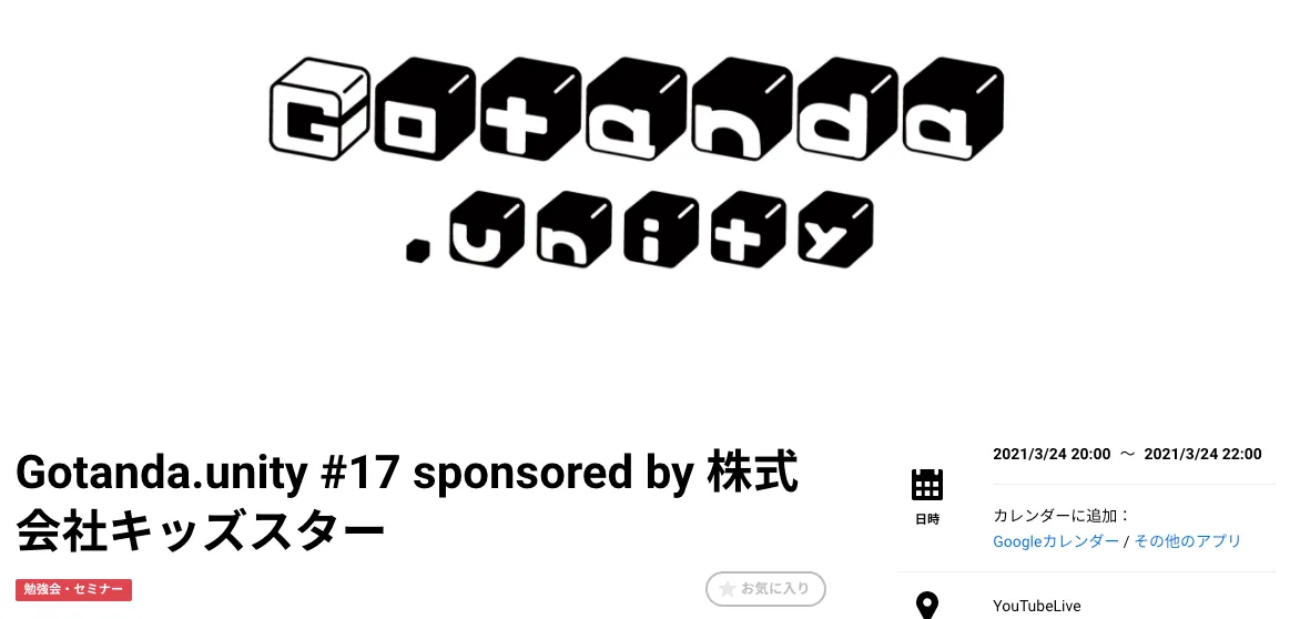 - Gotanda.unityの第17回目。オンライン開催のため動画も公開されています。