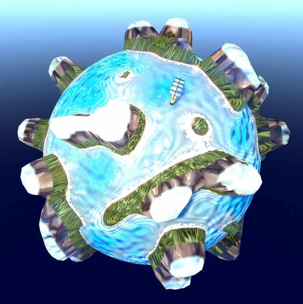 Shader Graphを用いて、画像のような惑星の水を表現するシェーダーを実装する方法について説明しています。