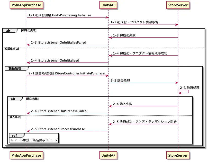 Unity のアプリ内課金パッケージである UnityIAPの課金シーケンスについて解説しています。